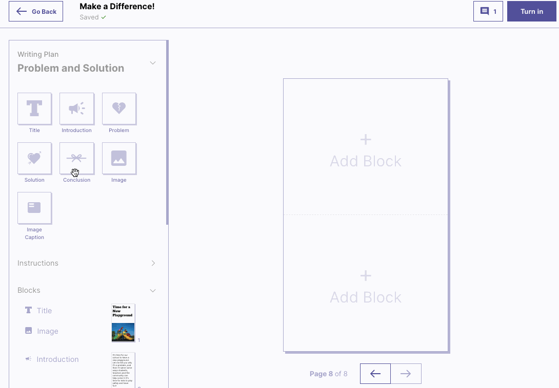 Help home›🎒Help Articles for StudentsWhat Are Blocks?DWritten by Daniel Stedman· Updated over 2 years agoBlocks are writing spaces that help you to organize your ideas.