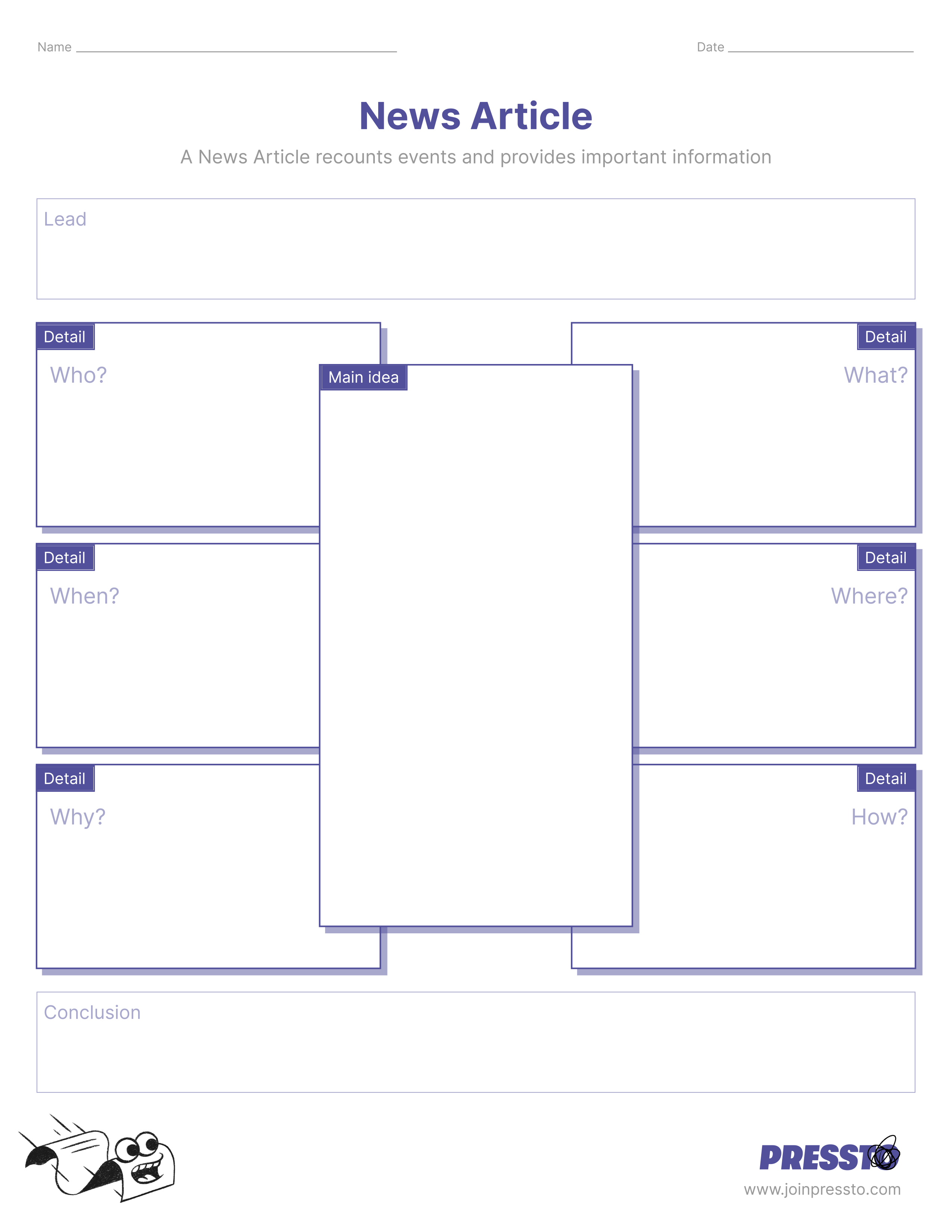 Click to download the News Article graphic organizer.